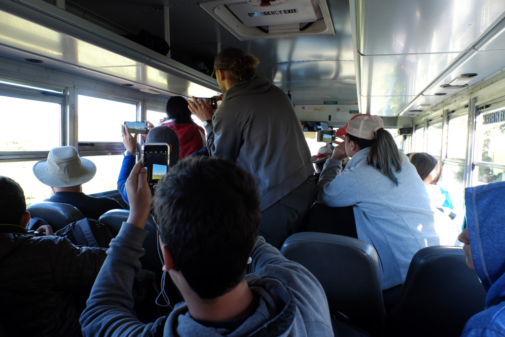 Иногда автобус останавливается и все выходят размяться. Автобусы, кстати говоря, делятся на те, где водитель ведёт по ходу движения экскурсию, иногда рассказывая поучительные сведения о парке, и на те, где водитель просто болтает и хохмит всю дорогу. На первых цена за проезд, понятное дело, заметно выше. Болтать - не мешки ворочить. Слово серебро, а молчание золото, учит нас народная мудрость.