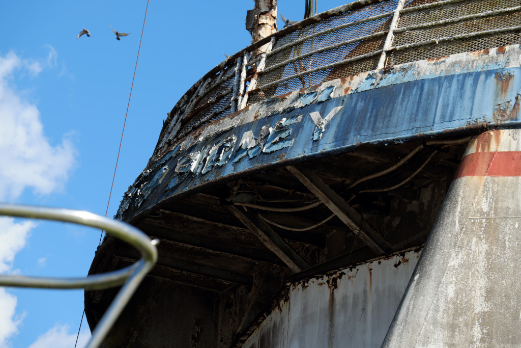 К своему большому удивлению видим баржу Макдональдса. Раньше она стояла совсем в другом месте, и потом пропала. Вот куда, оказывается, ее отбуксировали.