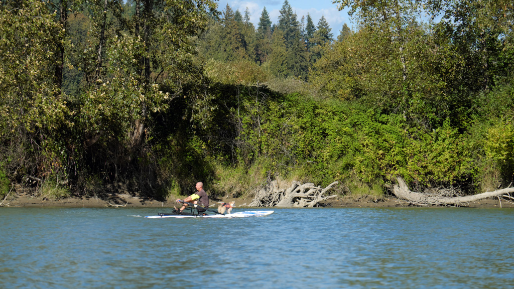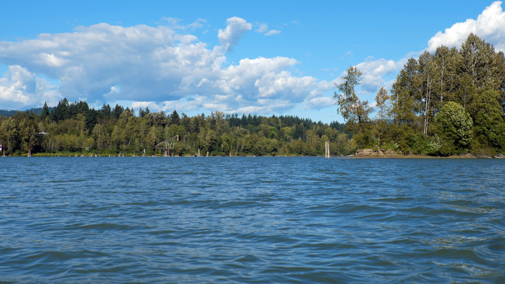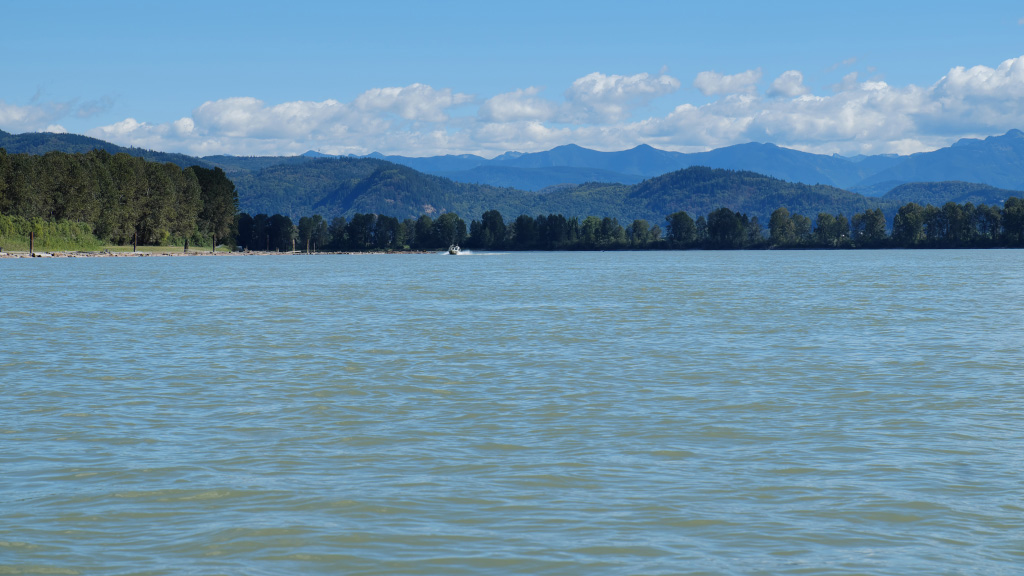 Дело в том, что река Фрейзер в нижнем ее течении сильно зависит от приливов на море. Течение в ней то ускоряется до десятка километров в час, то полностью останавливается или даже поворачивает вспять. Мы собирались пройти в общей сложности 42км от Mission до Port Coquitlam, и подгоняемые течением, надеялись уложиться в 4 часа.