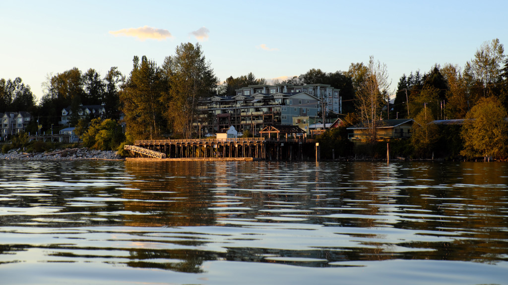 К вечеру солнце садится, ветер стихает совсем и гребля снова доставляет удовольствие. Но в PoCo мы уже никак не успеваем. Решаем высаживаться в Mapple Ridge.