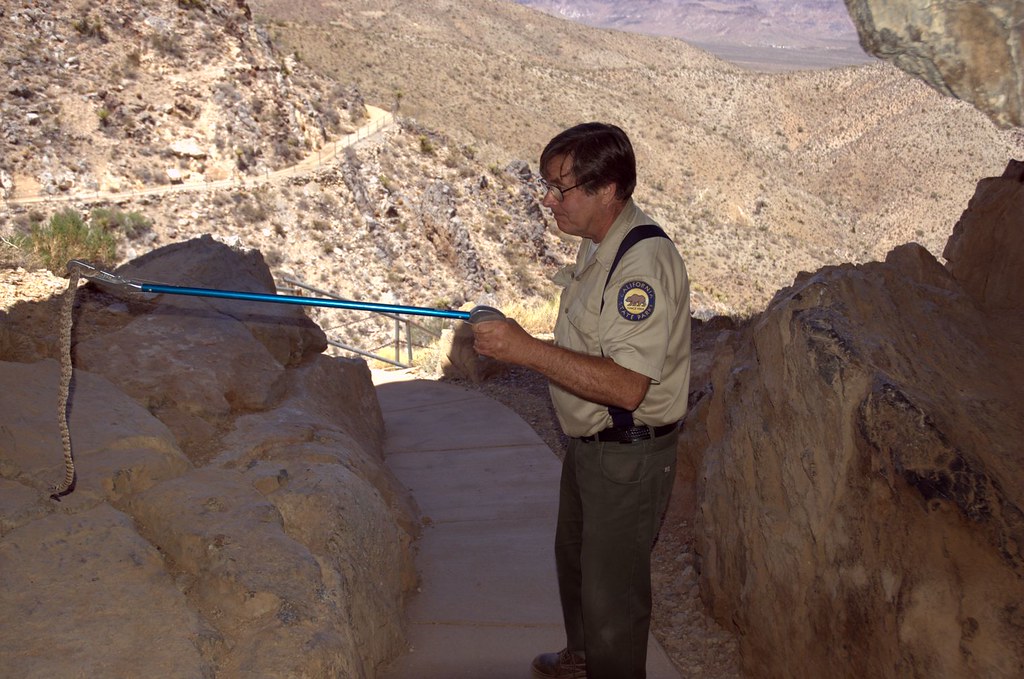 Потом я отправился на экскурсию в Mitchell Caverns State Park, который находится на территории Mojave Desert Preserve. Как следует из названия, гвоздь программы - осмотр пещеры. Первым делом убрали змей из прохода: