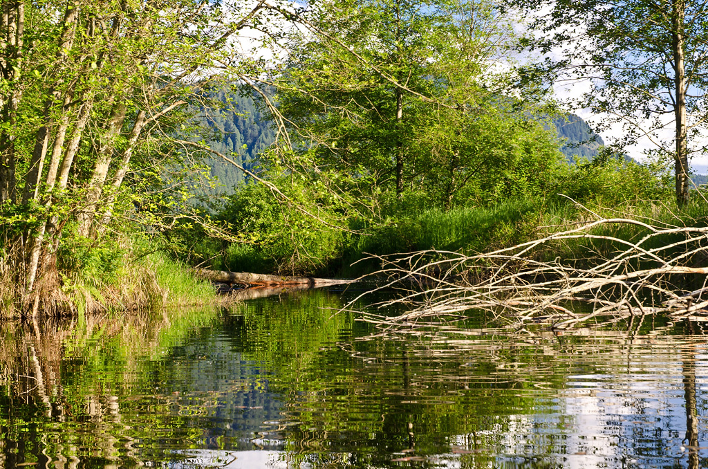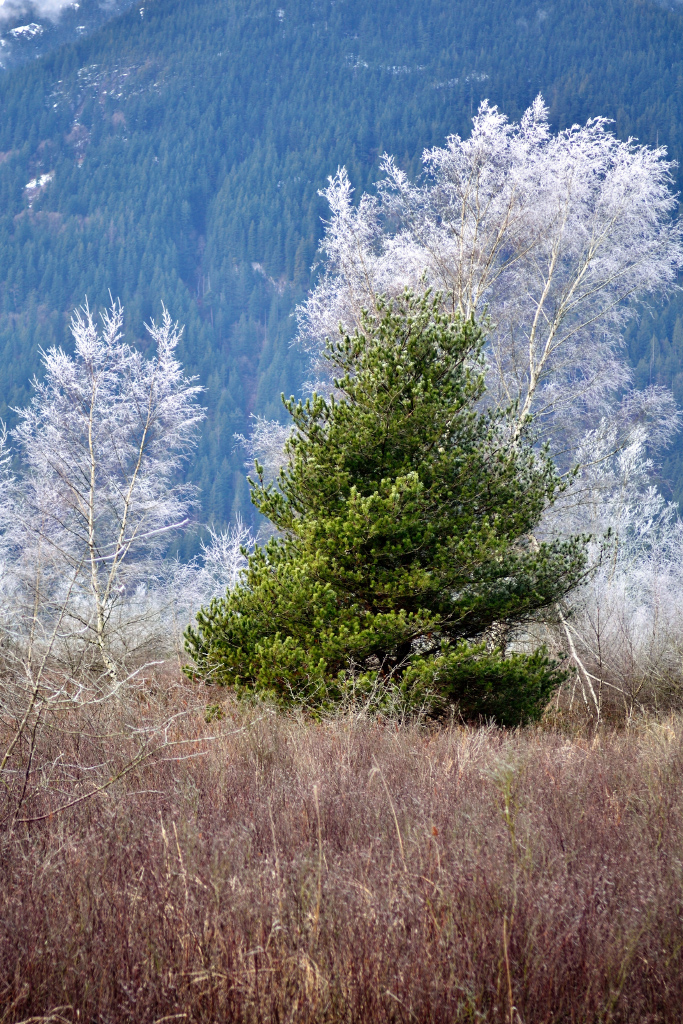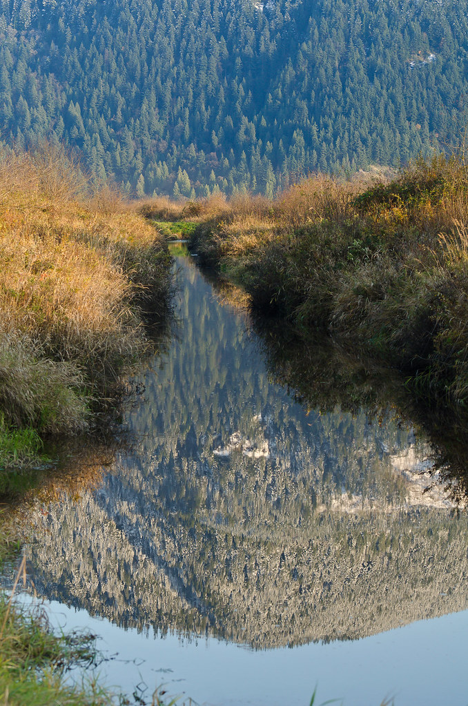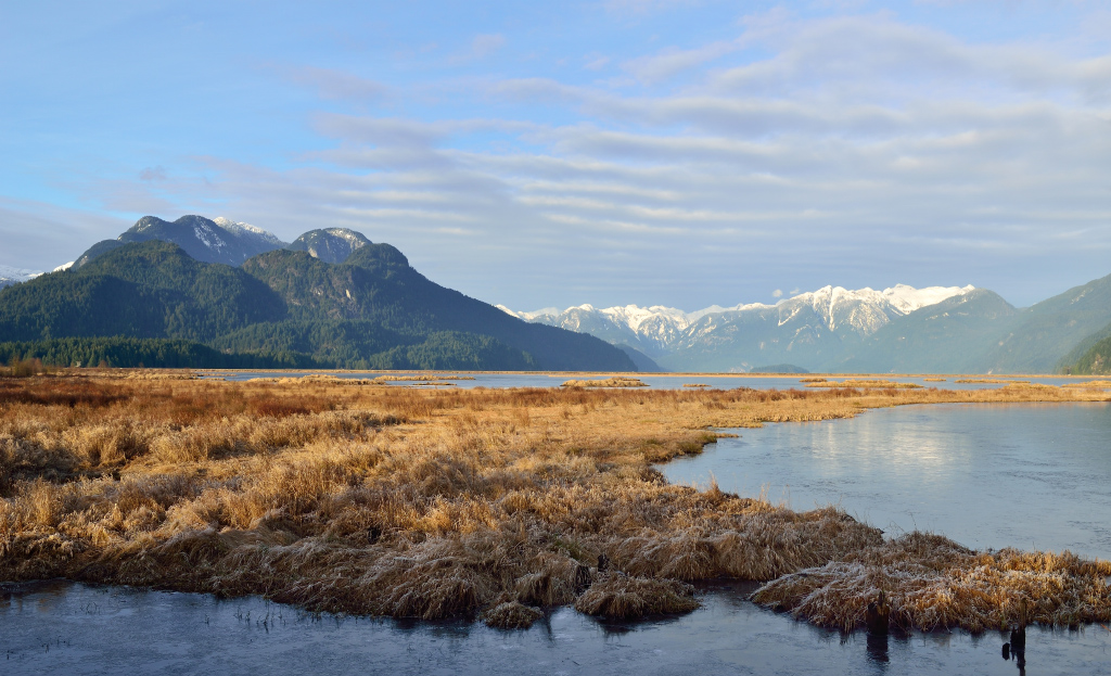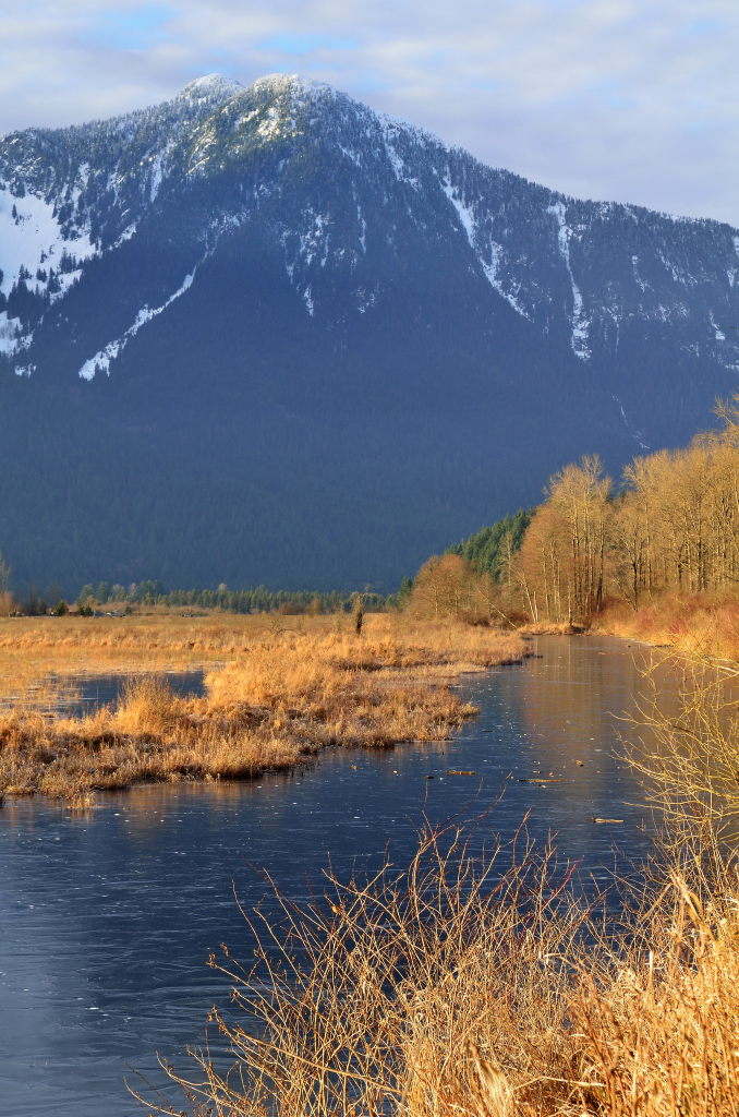 Разгадка сему чуду проста: вот тот водоем по левую руку - река Pitt и одноименное озеро - не замерзает, а мелкий пруд по правую - остыл и замерз …