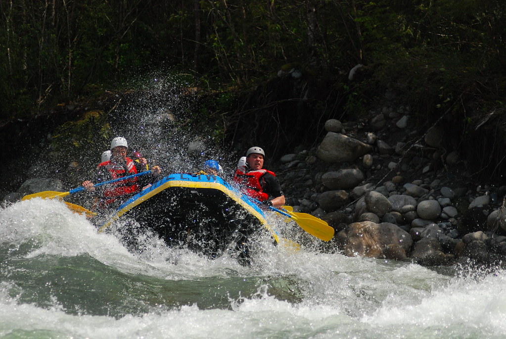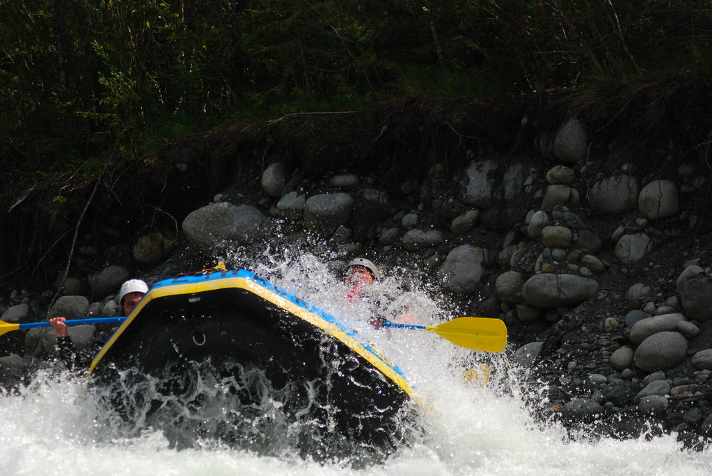 Рафтинг был - просто супер, не передать этого. Представьте ревущий поток горной реки, несущийся километров 30 в час, с бурунами и водоворотами, со столбами воды там, где река встречает подводные камни - и мы несемся посреди всего этого на плоту! Температура воды - 4 градуса, плот постоянно окатывает водой... но мы, конечно, в …
