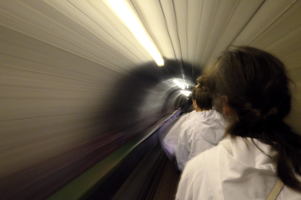 Еще одна забава - съехать на попе по деревянной горке. Скорость развивается при этом значительная, и заметно нагреваются штаны в точках контакта с деревом. Замыкал группу экскурсовод - он по роду службы был в специальных суперскоростных штанах, наверное чтобы догонять нарушителей при несоблюдении ими правил. Я снимал его спуск на камеру и еле успел отскочить, пытаясь понять, что такое он там там кричит на ходу в гулком тоннеле и мне ли это адресовано. Видимо, тормозов в его профессиональных штанах предусмотрено не было.