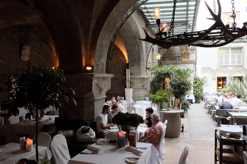 Вдоволь нагулявшись по городу, мы решили пообедать. У нас на примете было местечко под названием St. Peter's Stiftskeller. Знаменит этот ресторан не столько своими ломовыми ценами, сколько тем, что это возможно самый старый ресторан в мире. В 800-м году это, правда, была придорожная забегаловка, но за тысячу лет с лишним лет она развилась в солидный бизнес. Но дело ведь не в ценах, а в экспириенсе, верно?