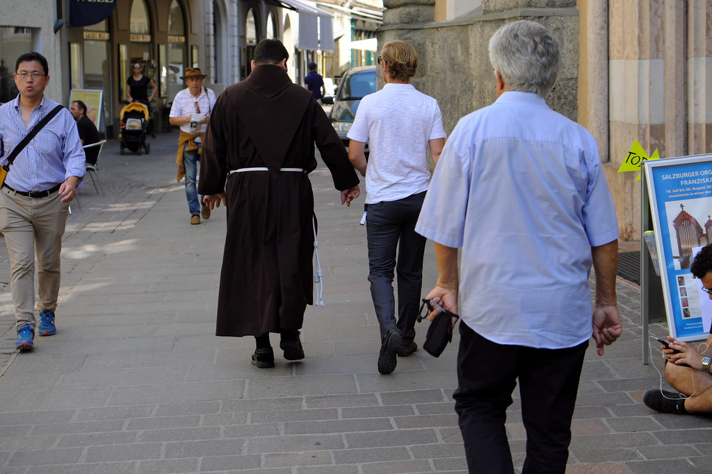 В городе Зальцбург "наше всё" - это... чуть не сказал Пушкин... Моцарт! Вокруг портрета насупленного Моцарта крутится вся местная коммерция. Моцарт там всюду, и легко поддаваясь ажиотажу, турист охотно скупает сувениры с изображением сурово хмурящегося композитора - конфеты, магниты на холодильник, футболки, сумки, кружки и тому подобные безделушки.