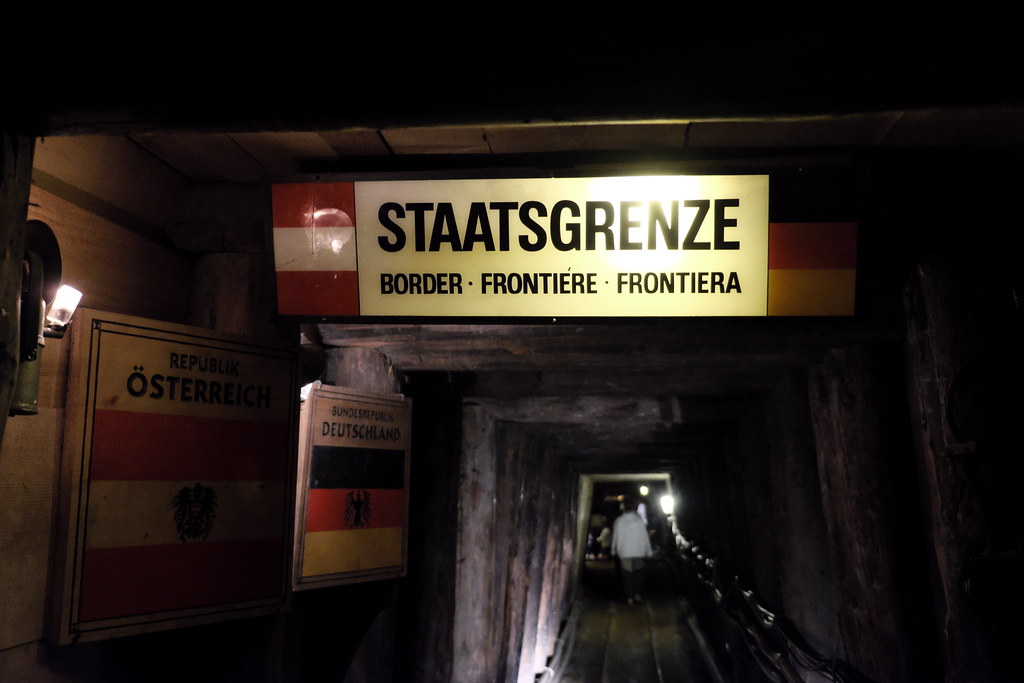 Соляные шахты - туристический аттракцион, но тем не менее достаточно забавный и всячески рекомендуемый к посещению. Там под землей можно запросто пересечь границу Австрии с Германией, и никто не спросит паспорта. Не знаю, почему экскурсовод так надеялся удивить нас этим, ведь на поверхности тоже никто не предъявляет документов, и даже никаких признаков границы нет.