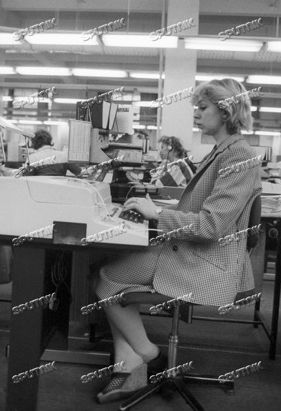 Центральный телеграф. Телеграфистка, член парткома, делегат XXVII съезда КПСС Татьяна Федорова за работой. (взято отсюда: http://visualrian.ru/media/869683.html)