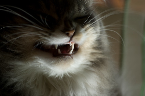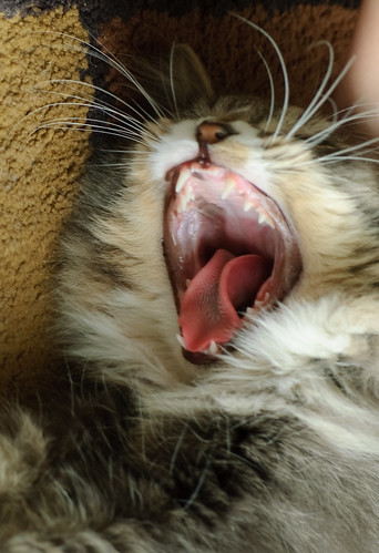 Иногда кошку можно подловить в интересные моменты, когда она и на кошку-то не похожа. Когда зевает, например: