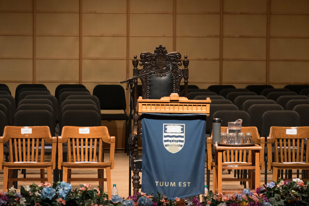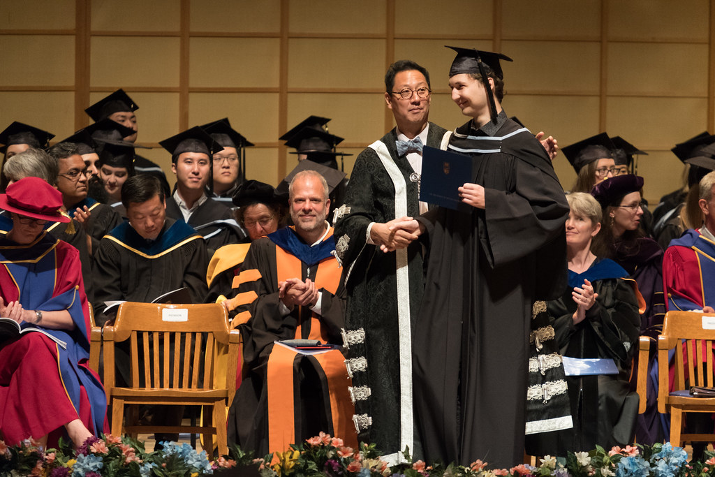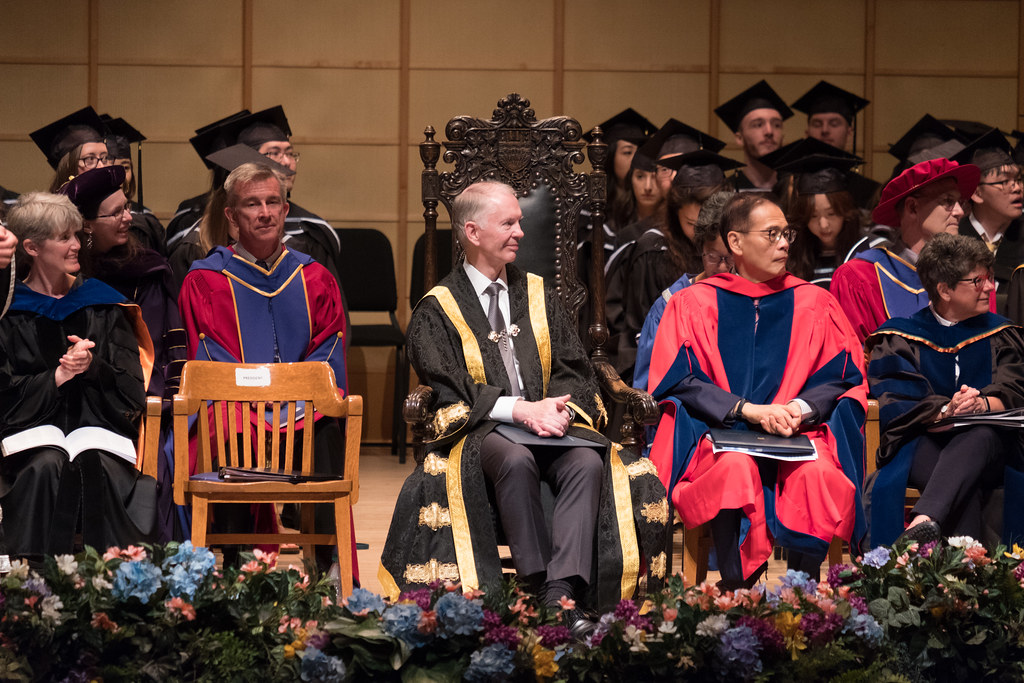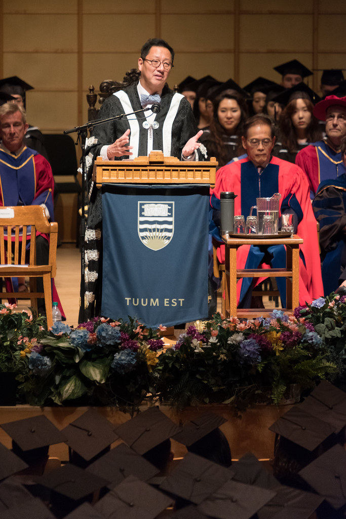 Ректор благосклонно кивал всем в ответ. Справа от него сидит бывший выпускник UBC, который вернулся в Гонконг, основал большую компанию, разбогател, и теперь занимается филантропией, спонсируя в том числе и родную альмаматер.