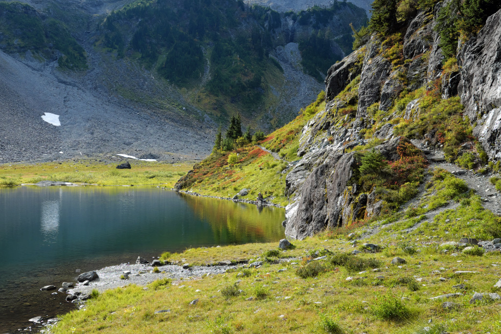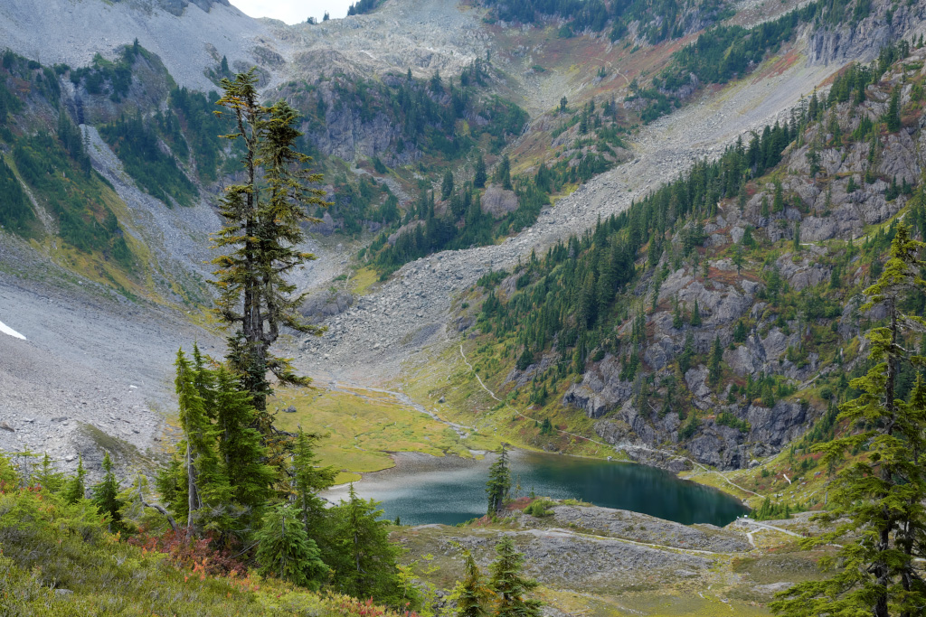 Сразу все по-делу, без лишних слов и прочей лирики. Докладываю: недалеко от нас по ту сторону границы есть национальный парк North Cascades, и в нем - купоросного цвета озёра. Там можно хайкать по окрестным горам и кататься по озеру на лодке, а также купаться. Поесть там негде. Вот и всё, а …