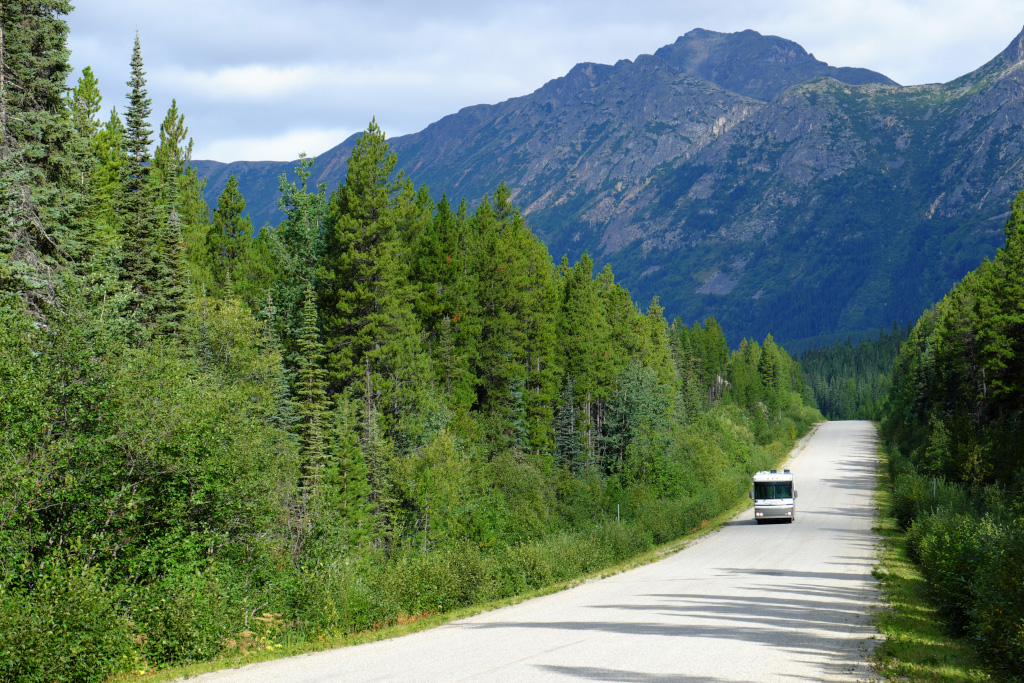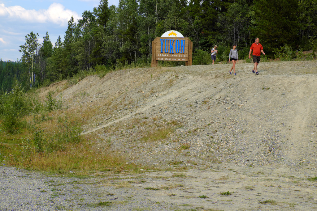 Ненадолго выезжаем из BC - 37-й хайвей делает петлю по южной части Юкона, прежде чем влиться в Alaska hwy. По Аляска хайвею мы будем спускаться на юг, но уже по восточной части BC. Инструкция в фотоаппарату прочитана еще не полностью, этот кадр - результат эксперимента с интервальной съемкой. Хотели все вместе сняться у знака, а вот не попали между срабатываниями таймера.