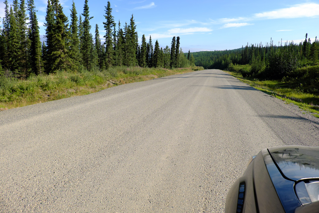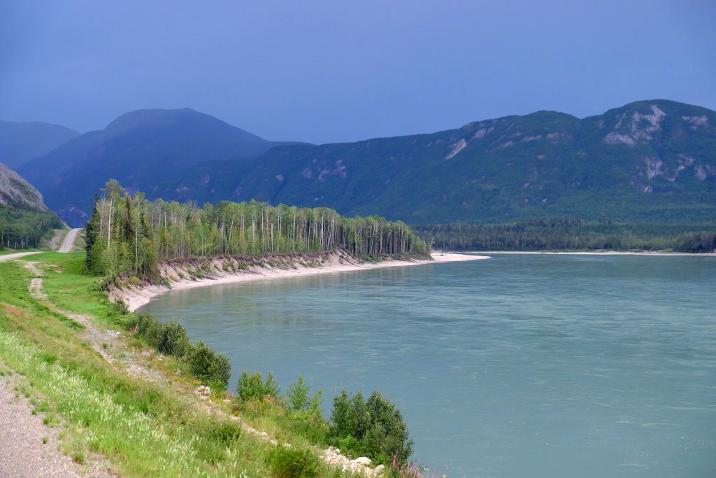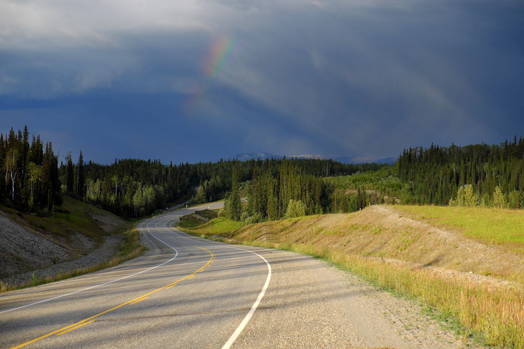Перекусив в городке, мы двинулись на восток. К вечеру нам надо добраться до Liard Lake. На востоке погода не радовала - там сверкали молнии и клубились черные тучи. Кстати, на фото представлен участок Alaska хайвея. Такая разница с 37-м! Строили его американские военные инженеры в 1942-м, и построили 2700км в какой-то немыслимый срок - всего за пол-года.